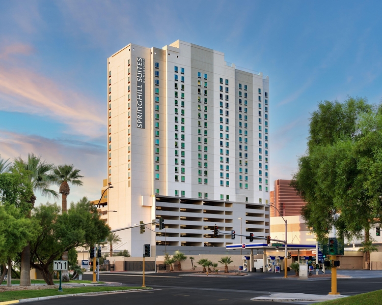 Las Vegas always shines brightly and so does SpringHill Suites Las Vegas Convention Center. Expect the unexpected when you visit our all-suite hotel in Las Vegas, perfect for extended stays. Were steps from the Las Vegas Convention Center and minutes from the airport. Hop on the Monorail or explore all the Strip has to offer, just two blocks away. We offer unrivaled value in Las Vegas, NV, with complimentary breakfast and Wi-Fi, plus a 24-hour fitness center and free local calls, all with no resort fees. Our hotel features plenty of additional amenities, such as meeting and event spaces, on-site catering, a business center, parking, laundry facilities and a rooftop pool with stunning views of the Strip. Stop by our full-service restaurant and bar for special promotions and a daily happy hour. Comfort is king at our hotel where every suite offers a king bed or two queen beds, along with a refrigerator, microwave and coffee maker. When business or pleasure brings you to Las Vegas, stay with us.
