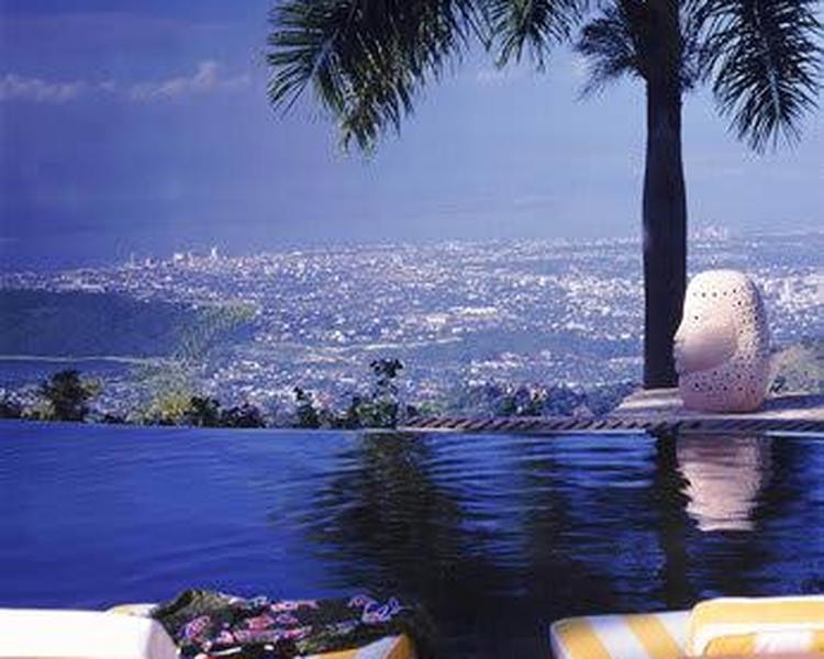 Strawberry Hill is poised high up in the stunning Blue Mountains of Jamaica 3100 feet above Kingston its white wood framed cottages and 26 acres of vivid gardens are the height of Jamaican charm. Bob Marley thought so and so do the many visitors and locals who come for the soaring mountain views delicious cuisine and fresh cool air time can stand still at Strawberry Hill. To ensure privacy each unique and exquisite cottage nestles within the mountains contours. The verandas are angled to capture their own ravishing view. In the evening relax and lively up yourself with a rum punch in the snug wood-paneled bar. Savor the succulent modern Caribbean flavors served in the veranda restaurant aglow with candles and starlight. By day drink in the vista of Kingston far below and the blue Caribbean gleaming beyond from our dramatic infinity swimming pool.