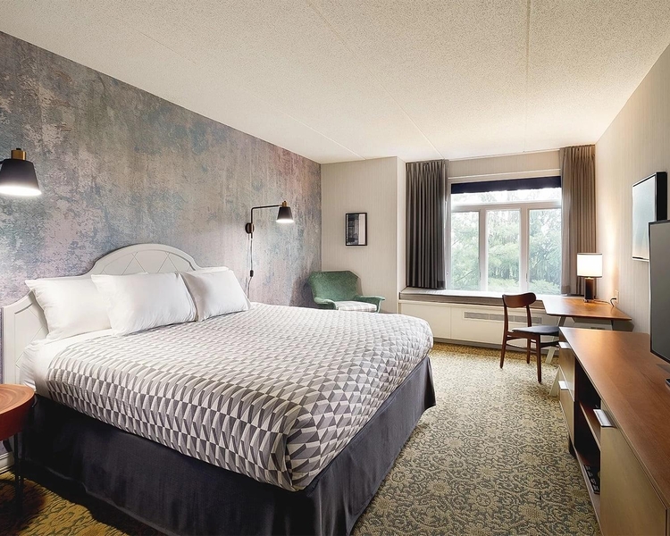 This private estate is tastefully decorated in traditional furnishings. Each of our spacious and pleasantly appointed guest room has a king-size bed or two double beds. Many rooms have views of the Hudson River including our King House Mansion which features 10 elegantly furnished guest rooms. The property offers an exquisite breakfast buffet daily with hot and cold items and omelettes and waffles made to order. Our recreation and fitness center is fully equipped with state of the art equipment as well as indoor and seasonal outdoor swimming pools tennis courts racquetball bocci and volleyball. Our newest addition Cellar 49 - a Tavern at the Mansion opened in April 2008 features a full service restaurant serving dinner daily 7 nights a week and lunch on weekends-large screen TV games and a pool table..