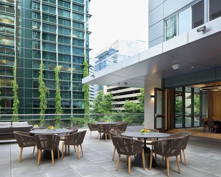 - Welcome to The Porter Portland Curio Collection by Hilton perfectly located in one of America s most walkable cities. Rising 16 stories above the thriving Fountain District our Portland hotel is steps from premier shops popular restaurants and Keller Auditorium and just 2 blocks from Tom McCall Waterfront Park. OHSU Hospital and Legacy Good Samaritan are conveniently close. The MAX Light Rail station is a quick stroll for any travels to Greater Portland. Guest rooms are stunning rustic and modern with complimentary WiFi a 55-inch TV mini-fridge a coffeemaker with local teas and coffees and cozy extras like plush robes and slippers. Upgrade for floor-to-ceiling windows and views of the Willamette River and Cascade Mountains or book a suite with a separate living area dining table and wet bar for entertaining. Hotel restaurants blend indulgence with Portland s love for the outdoors. Foodies will crave our Terrane Italian Kitchen Bar for soulful Italian-inspired American food served all day. Grab gourmet pizza at the Chiosco take-out window or stop by The Portland Exchange for custom picnic baskets for a unique day in the city. Don t miss Xport a rooftop restaurant lounge featuring outdoor dining decks and sweeping views of the mountains. Feel stress slip away in the Meditation Spa or take a refreshing dip in the heated indoor pool. Our fitness center is always open and we offer classes in meditation yoga and aqua aerobics. Plan events in elegant indoor/outdoor spaces that are perfect for small meetings up to lavish receptions.