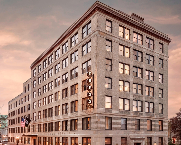 The Press Hotel, located on the corner of Exchange and Congress Streets in the Old Port District, features 110 thoughtfully appointed luxury guestrooms, including a Penthouse Suite with rooftop access and 360-degree views of the city; four private function rooms and is home to UNION, its 65-seat restaurant by Executive Chef, Joshua Berry. Each guestroom has design inspired by a 1920s writer's office including a vintage-styled journalist desk, playful newsroom references throughout and floor to ceiling marble bathrooms. An iconic front-desk "letterpress art wall" welcomes guests to its front desk and to its Inkwell lobby bar featuring hand crafted cocktails. The hotel also has an Art Gallery featuring local artists works, open to the public, which also includes a two story signature installation piece of vintage typewriters called the SWARM, to depict the chaos of a newsroom.