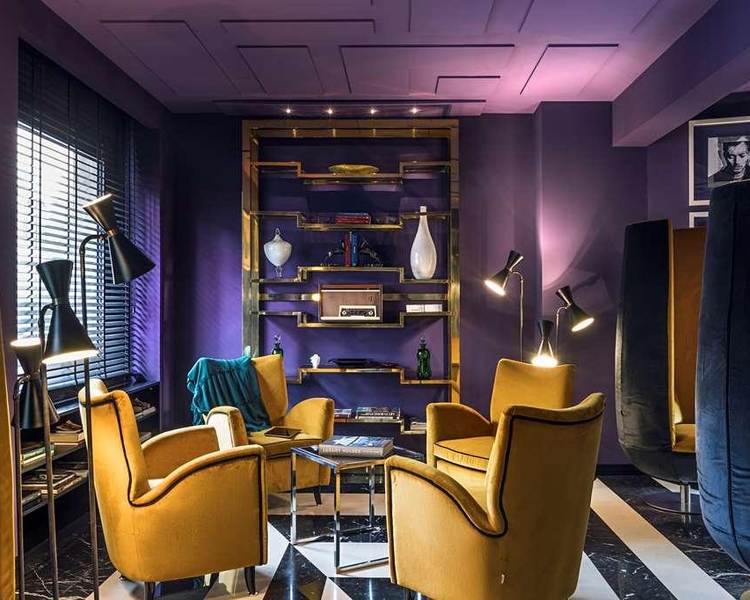 The Tribune is a modern hotel in the city center of Rome with custom made furniture, finishes and soft lights. Marble floors in the lounge and reception areas, the restaurant and the bar.