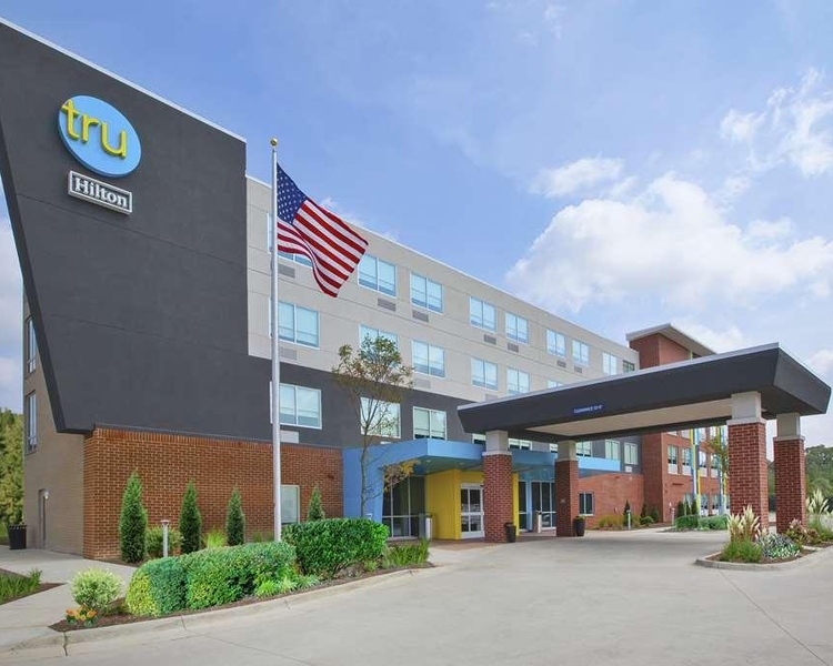 - Experience a Truly unique hotel stay at Tru by Hilton Jackson. We re conveniently located close to major highways and Jackson shopping entertainment and restaurants. Enjoy a smaller more efficiently designed room with a rolling work desk large TV with premium channels and tons of storage space. Spacious bathrooms with premium bath products from Not Soap Radio make mornings a breeze. Stay healthy or indulge with our free hot breakfast offered daily. We re dishing out piping hot scrambled eggs and sausage as well as yogurt fruit granola and oatmeal. Treat yourself to our delicious waffle boats with over 30 toppings to choose from. Unwind in our lively lobby with semi-private alcoves and complimentary games. Chill out by the media wall make a splash in the indoor pool or work out in the fitness center. You can print from anywhere in the hotel with free wireless printing and stay productive with free fast WiFi and charging outlets everywhere. Crush cravings in our 24/7 Market with snacks and drinks always available.