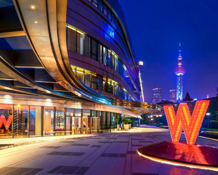 W Shanghai -The Bund is a luxury hotel located on the up-and-coming North Bund in glamorous Shanghai. Wake up to views of the Huangpu River from 374 supremely chic hotel rooms and suites that fuse sophisticated Mandarin designs with playful twists. Innovative decor and 5,800 square meters of event space ensure your meetings are anything but ordinary. Taste the traditional flavors of Shanghai at our four restaurants, including The Kitchen Table, a modern New York City-style bistro, YEN, a two-story restaurant that serves authentic Shanghai dishes with a twist, Liquid at YEN, a Golden Age-inspired cocktail bar and WOOBAR, a playground that spotlights world-renowned DJs and crafted concoctions on The Bund. Unwind in spectacular style at our hotel's FIT gym, then pamper yourself at AWAY® Spa. Take a swim in our outdoor and indoor WET pools with a playful WET Deck that faces Shanghai's iconic skyline.