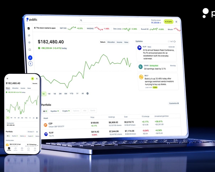 Public is a multi-asset investing platform where you can build a portfolio of stocks, bonds, crypto, options, and more—all while earning an industry-leading 4.1% APY on your cash. With Public Premium, you can access advanced data, trading features, and VIP account management. Ready to sign up? You can fund your account in five minutes or less and get up to $10,000 when you transfer your existing investments.